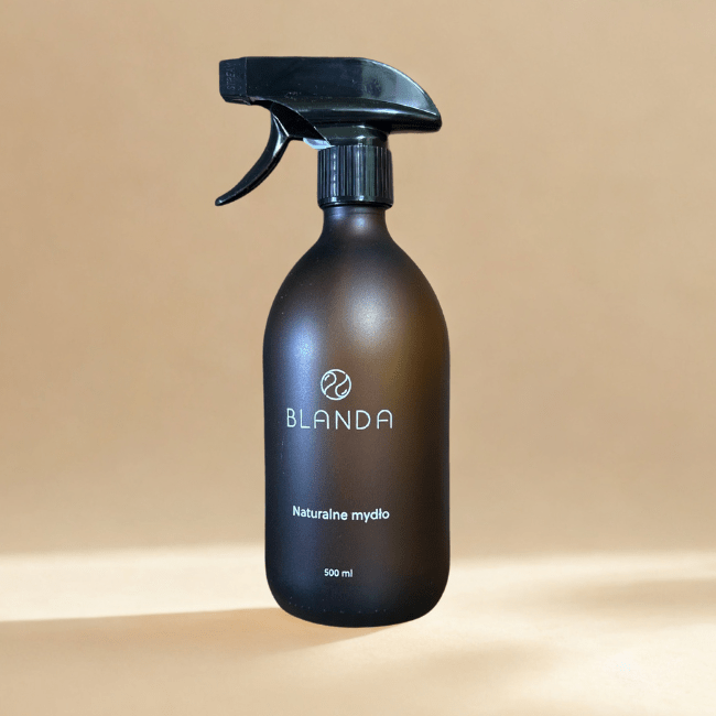 Butelka z ciemnego, szlachetnego szkła o pojemności 500 ml to idealne uzupełnienie wnętrza w duchu eko. Pasuje do estetyki środków czystości od Blandy i pozwala zrezygnować z plastikowych opakowań, które zaburzają harmonię w Twoim domu.