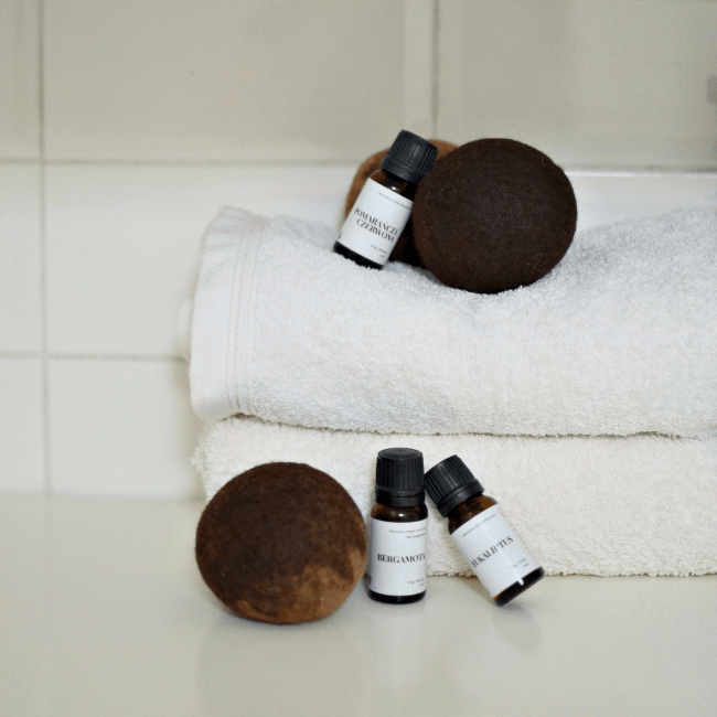 TAK! Jeśli lubisz pachnące pranie, skrop każdą z kul ulubionym olejkiem eterycznym (po 2-4 krople lub więcej wg uznania). Daj im chwilę na wchłonięcie olejków i dopiero wrzuć do suszarki.