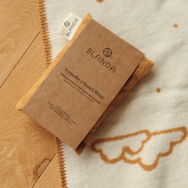 – naturalny kompres, który łagodzi kolki i koi napięcia dziecka. Wykonany z naturalnych tkanin – lnianego pokrowca i bawełnianego wkładu wypełnionego pestkami wiśni.