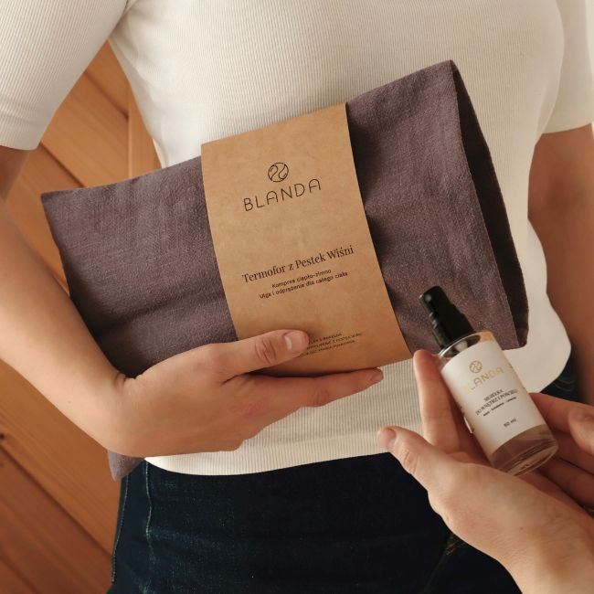 – naturalny kompres ciepło-zimno wykonany z lnu i bawełny, wypełniony pestkami wiśni. Ułatwia rozluźnienie mięśni, łagodzi napięcia, przynosi ulgę w stresie i zapewnia błogi odpoczynek.