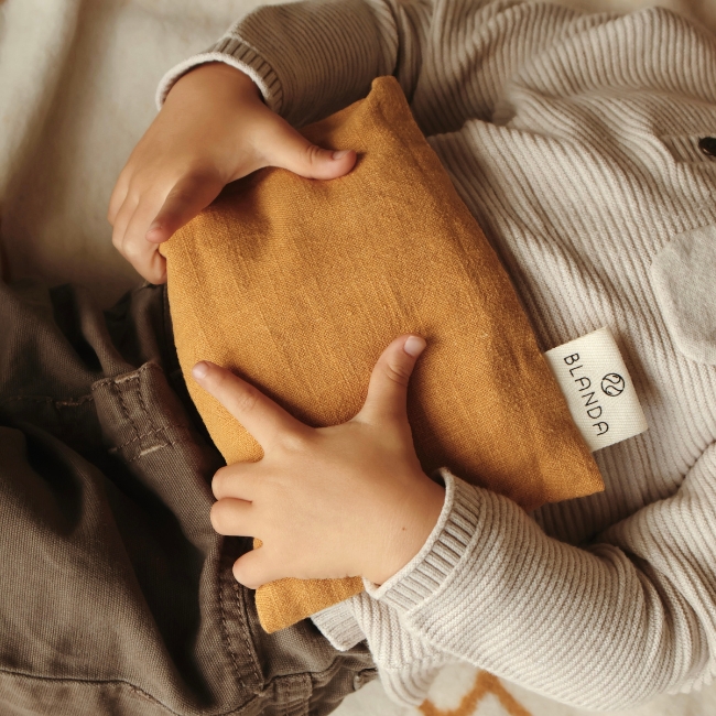 Dla maluszka: Delikatnie podgrzej mały termofor i przyłóż go do brzuszka – naturalne ciepło pestek wiśni pomoże złagodzić kolki i napięcie.