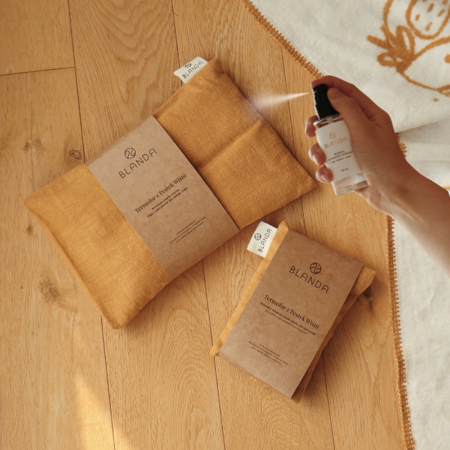 Zapachowy rytuał przed snem: Rozpyl mgiełkę w powietrzu lub spryskaj pościel czy wkład termofora mamy, aby stworzyć błogi klimat pełen świeżości i spokoju.